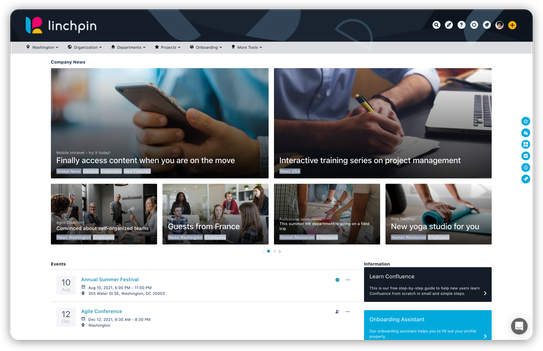 Linchpin ist eine App des Herstellers SEIBERT//MEDIA. Mit der Linchpin Intranet Suite verwandelt sich Ihr Confluence in ein Social Intranet, zugeschnitten auf Ihr Unternehmen. News, Events, Micro-Blog – alles befindet sich an einem zentralen Ort.