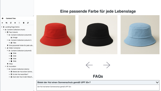 Das Auge kauft mit. Übersichtlichkeit, das Verbergen von opulenten Beschreibungen bis der Interessent mehr wissen möchte, sowie die Wiedererkennbarkeit Ihrer Marke helfen bei der Kaufentscheidung bekanntlich mit. Dafür hält das CMS einen Fuhrpark an Layout-Elementen und Funktionbausteinen bereit.