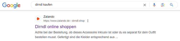 Zalandos Snippet besteht aus einem beliebigen Web-Textausschnitt, der mitten im Satz abbricht und nicht zum Klick anregt.